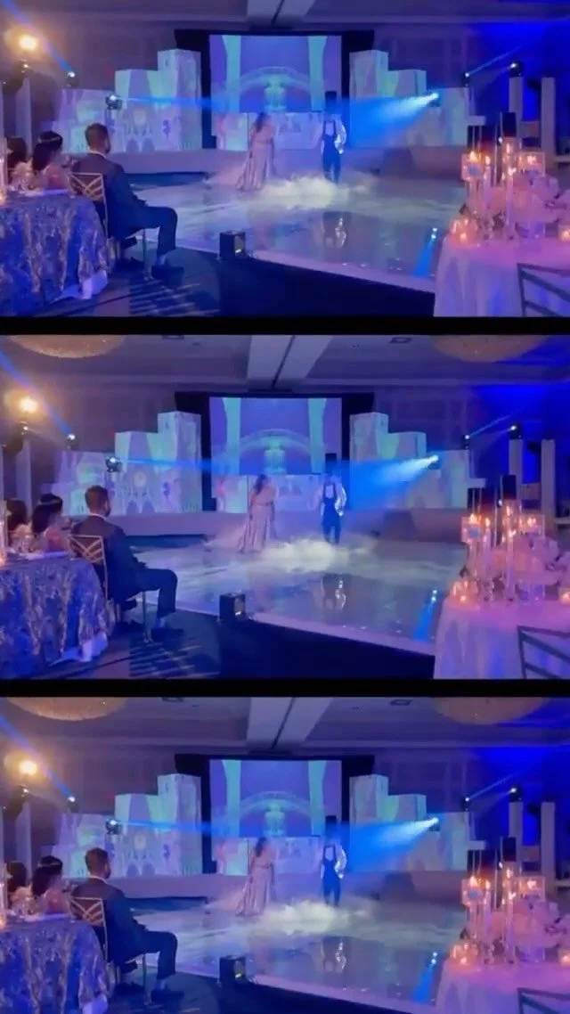 For the reception, the bride wanted a winter wonderland theme. We designed the entire evening around this theme and weren’t short of any details. We built a massive backdrop and turned it into a White Castle, added a LED dance floor with custom graphics like snowflakes, and of course we even made it snow for their first dance! For us, this production was truly magical.